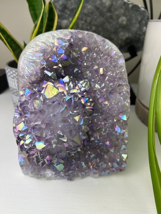 Large Brazilian Aura Amethyst | Light Pink-Purple with Iridescent Aura
