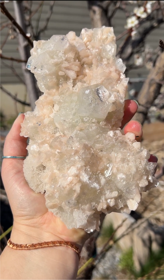 Apophyllite & Peach Stilbite Cluster | Gentle Light & Heart-Healing Energy