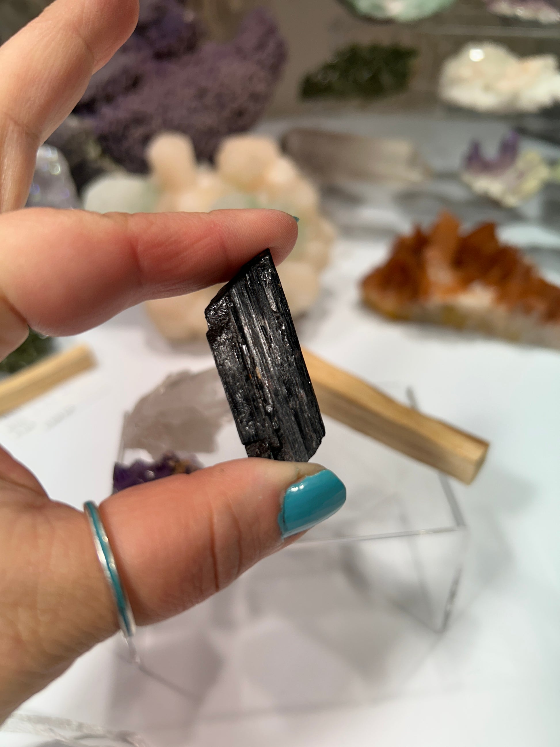 Black Tourmaline – Your ultimate protector. This grounding stone shields against negativity, EMFs, and unwanted energies, helping you feel centered and safe.